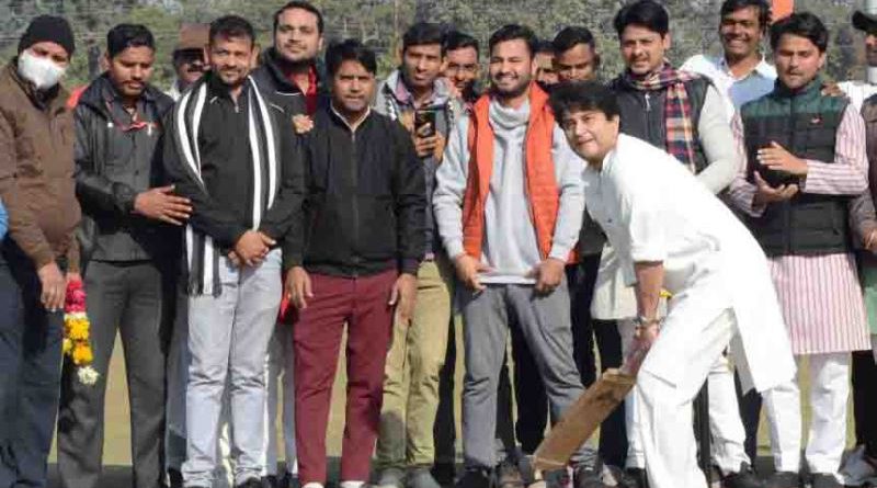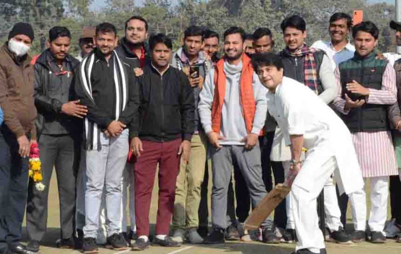 केन्द्रीय मंत्री श्री सिंधिया ने की कलात्मक बल्लेबाजी