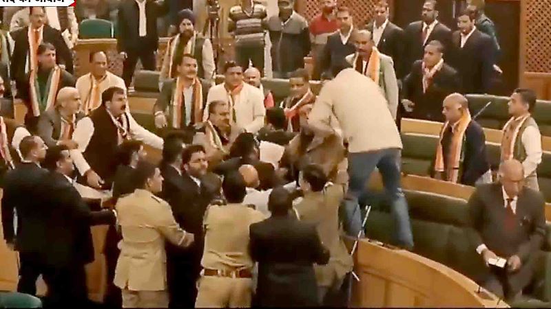जम्मू कश्मीर विधानसभा में 370 को लेकर तीसरे दिन भी विधायकों के बीच हुई धक्का-मुक्की और हाथापाई