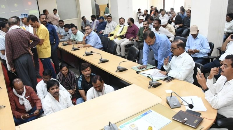 समस्या के समाधान की मांग को लेकर जनसुनवाई में धरना पर बैठे पार्षद