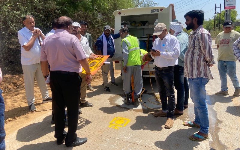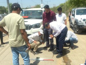 न्यू कलेक्ट्रेट से अलापुर वाया सिरोल तिराहा तक बनी 2.7 किमी व्हाइट टॉपिंग सड़क की गुणवत्ता की जांच