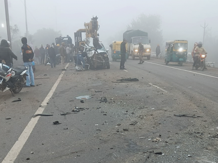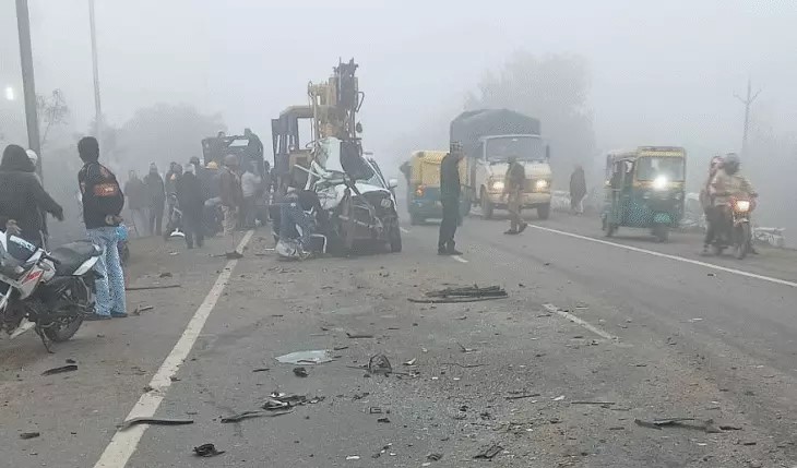 ग्वालियर में घने कोहरे के कारण ट्रक की टक्कर से कार के परखच्चे उड़े, 4 की मौत