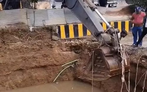 रस्सी फेंककर गड्‌ढे से बाहर निकाला