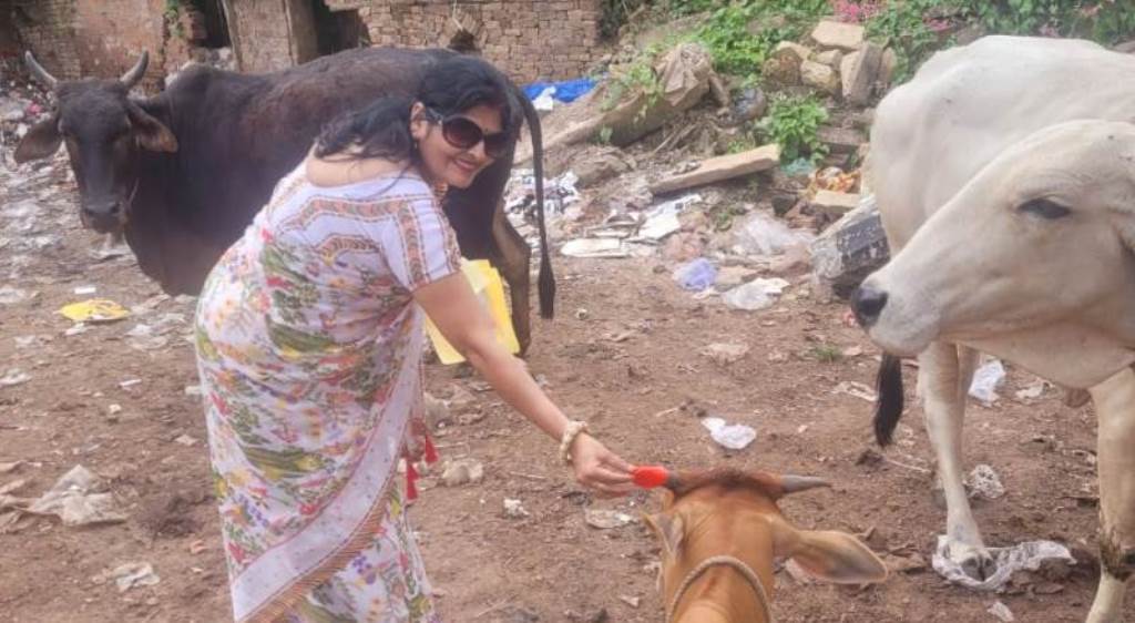 सेवा सप्ताह -गौशाला में फल, दाल, दलिया गुड़ और चारा दिया, गाय के सींगों पर रेडियम लगाए