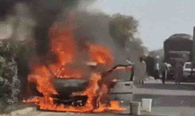 एनएच-44 हाईवे पर चलती कार में लगी आग, सवारियों ने कूंद कर जान बचाई