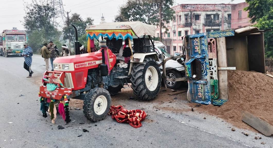 ट्रैक्टर-ट्रॉली से फॉर्च्यूनर टकराई कार घटनास्थल पर 5 की मौत
