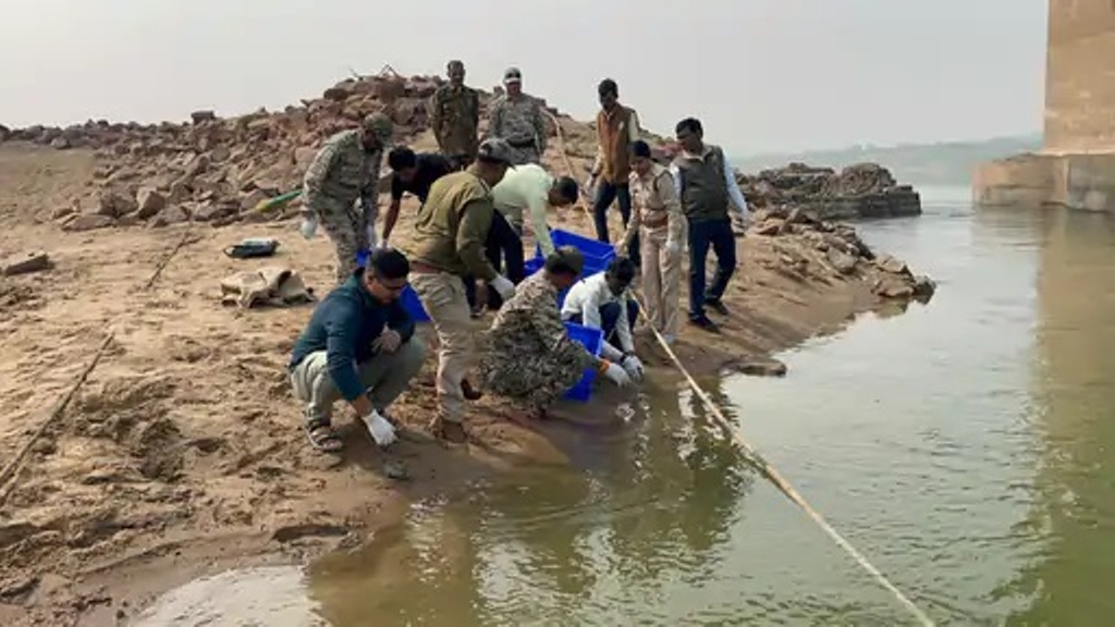 मुरैना. वन विभाग एसटीएफ (एसटीएफ) ने शुक्रवार को चम्बल नदी में विशेष बटागुर प्रजाति के कछुए और घडि़याल के बच्चे छोड़े गये है। यह कार्यवाही शिवपुरी न्यायालय के आदेश पर की गयी है। इन 30 कछुओं और 30 घडि़यालों के बच्चों को बीती रात 12 जुलाई 2025 को मुरैना के जौरा कस्बे से एक कार में तस्करी के दौरान पकड़ा गया था। वन विभाग जलस्तर सामान्य होने का इंतजार कर रहा था। जिसके बाद शुक्रवार को इन्हें नदी में छोड़ा गया है।