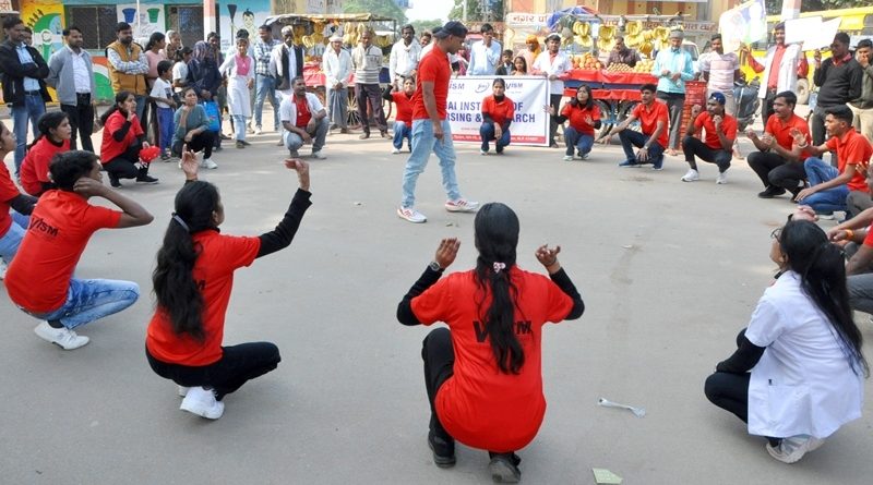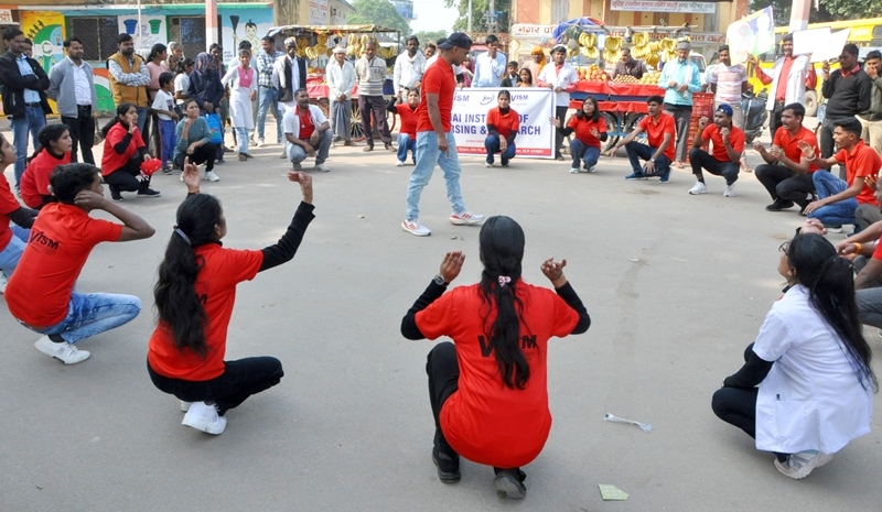 ग्वालियर – VISM ग्रुप आफ स्ट्डीज़ के अंतर्गत संचालित ’जय इंस्टीट्यूट ऑफ नर्सिंग एंड रिसर्च महाविद्यालय के विद्यार्थियों द्वारा विश्व एड्स दिवस के अवसर पर आज आतरी गाँव में जनजागरूकता रैली एवं नुक्कड नाटक का आयोजन किया गया। कार्यक्रम का उद्देश्य ग्रामीण क्षेत्र के लोगों में एचआईवी एड्स के प्रति जागरूकता बढाना और इसके बारे में फैली भ्रांतियों को दूर करना था। रैली में विद्यार्थियों ने “विश्व एड्स दिवस मनाना है, लोगो को एड्स के प्रति जागरूक बनाना है“ एवं “जागरूक बनो, एड्स से दूर रहो” जैसे नारों के माध्यम से लोगों को जागरूक किया। रैली के बाद विद्यार्थियों ने गाँव के मुख्य चैक पर एक प्रभावशाली ’’नुक्कड नाटक’’ प्रस्तुत किया।