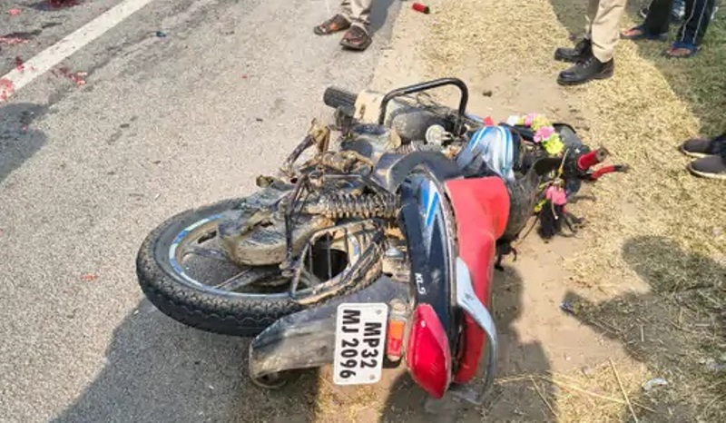 ग्वालियर-हाइवे पर कंटेनर ने बाइक में मारी टक्कर में युवक की मौत
