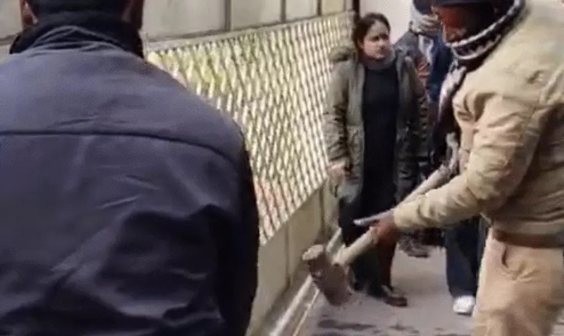 नगरनिगम कर्मियों ने जब जेयू के मुख्यद्वार को हथौड़े से तोड़ा, अतिक्रमण दस्ते ने जब्त की निर्माण सामग्री