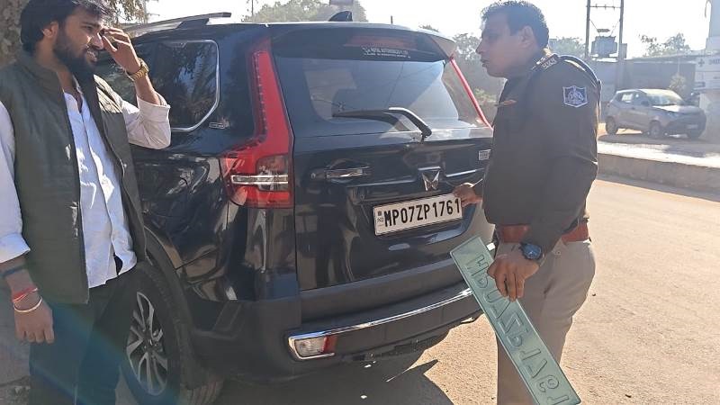 जप्त वाहन -एक ब्लेक कलर की टाटा हैरियर कार एमपी07-एएफ-2122 को जप्त किया गया।