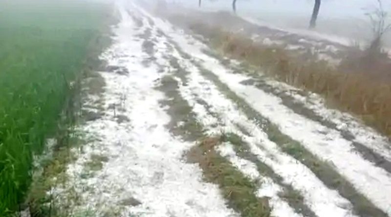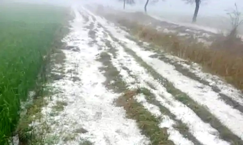 ग्वालियर. आंतरी, सिकरौदा, भितरवार इलाके में मंगलवार की सुबह हुई ओलावृष्टि से किसानों की फसल चौपट हो गयी। सुबह सिकरौदा, बड़की सराय गांव के खेत में बर्फ की सफेद चादर से लिपटें दिखाई दिये। जब खेतों में ओलावृष्टि से तबाही का नजारा देखा तो दिल बैठ गया, किसानों के चेहरे उदास थे।