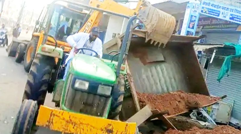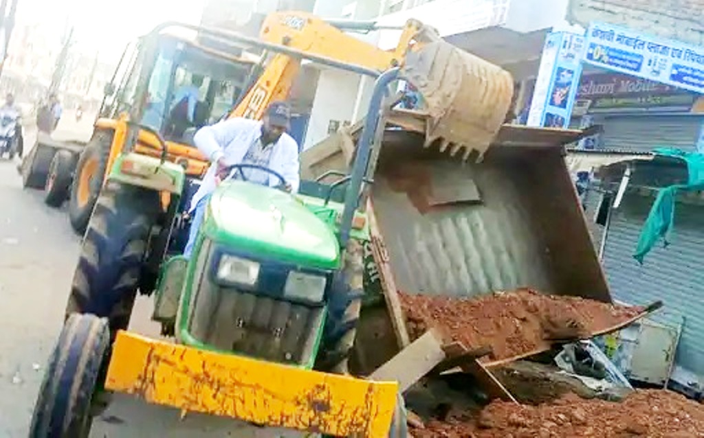 मुरम से भरी ट्रैक्टर-ट्रॉली पलटने से 2 घायल, बाइक और स्कूटी क्षतिग्रस्त