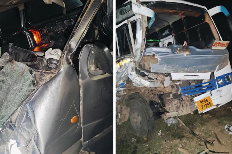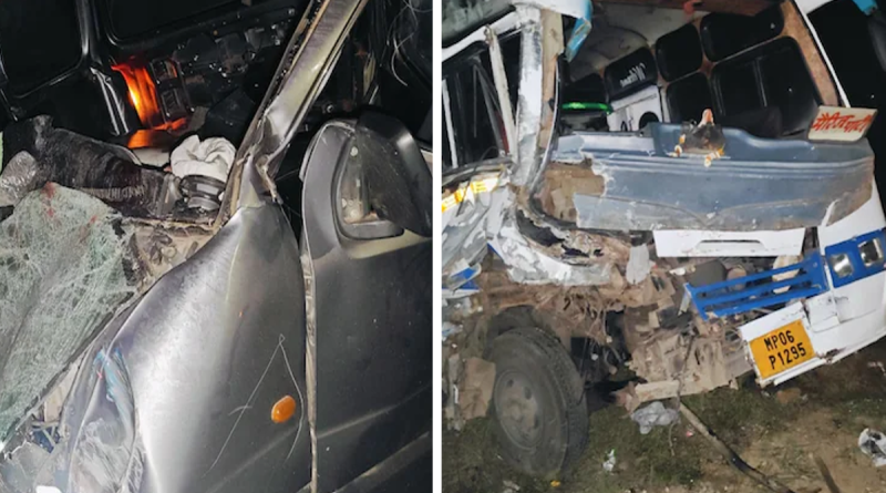 ग्वालियर लौट रही बस ने कार को मारी टक्कर, 5 कीम मौत व 7 लोग गंभीर