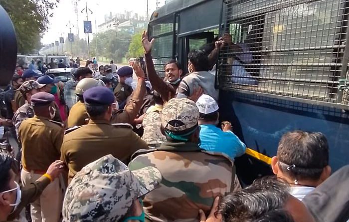 आम पार्टी के कार्यकर्ताओं बिना अनुमति के प्रदर्शन कर रहे थे