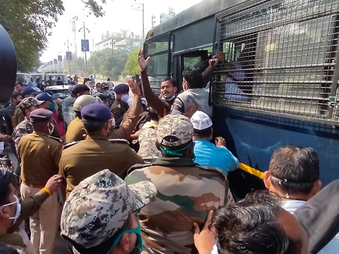 ग्वालियर में केंद्रीय कृषि मंत्री के बंगले का घेराव कर रहे 15 आप कार्यकताओं को पुलिस ने किया गिरफ्तार