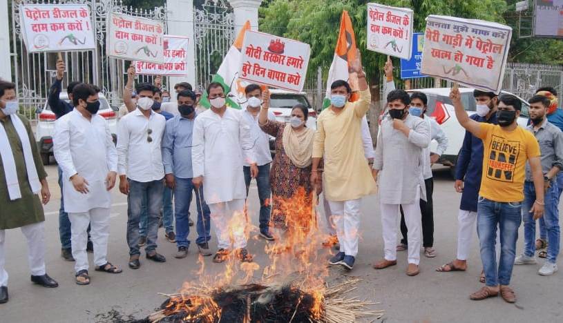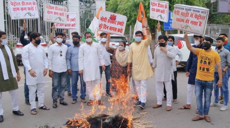 ग्वालियर बेहताशा बढ़ती हुई महँगाई एवं लगातार बढ़ रहे पेट्रोल और डीजल की दामो के विरोध में फूलबाग चौराहे पर यूथ कांग्रेस के जिला अध्यक्ष हेवरन सिंह कंसाना के नेतृत्व में केंद्र की मोदी सरकार का पुतला दहन किया गया।