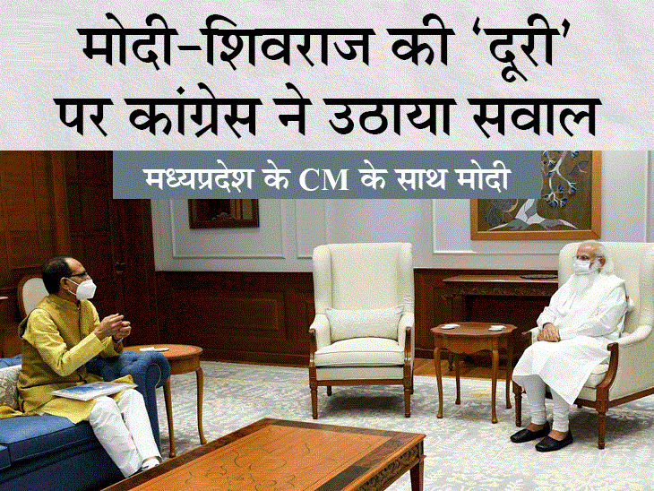 भोपाल. दिल्ली में पीएम मोदी और सीएम शिवराज सिंह की मुलाकात हुई, हाई प्रोफाइल इस मुलाकात की तस्वीर जारी हुई जिसमें पीएम मोदी के बगल की कुर्सी खाली है और शिवराज कुछ दूरी पर सोफे पर बैठे है। इस फोटो को ट्वीट कर कांग्रेस ने कहा कि पीएम मोदी और सीएम शिवराज के बीच दूरियां बढ़ गई है यह तस्वीर से समझा जा सकता है। अब सरकार बदल गए है, सरकार बदलने वाली है।