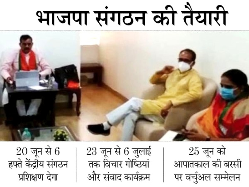 वीडी शर्मा ने बताया कि बैठक में तय हुआ कि 1 से 15 जुलाई तक जिला समितियों की बैठक होगी जिसमें प्रदेश कार्यसमिति के पदाधिकारी वर्चुअली जुड़ेंगे इसके बाद 16 से 31 जुलाई तक मंडल कार्यसमितियों का आयोजन किया जाएगा। बैठक के दौरान प्रदेश कार्यालय भोपाल में कोरोना गाइडलाइन के अनुरूप निर्धारित संख्या में प्रदेश पदाधिकारी उपस्थित रहेंगे। अन्य प्रदेश पदाधिकारी और प्रदेश कार्यसमिति सदस्य जिन जिलों से आते है उन्हीं जिलों के जिला कार्यालयों से वर्चुअली जुड़ेंगे।