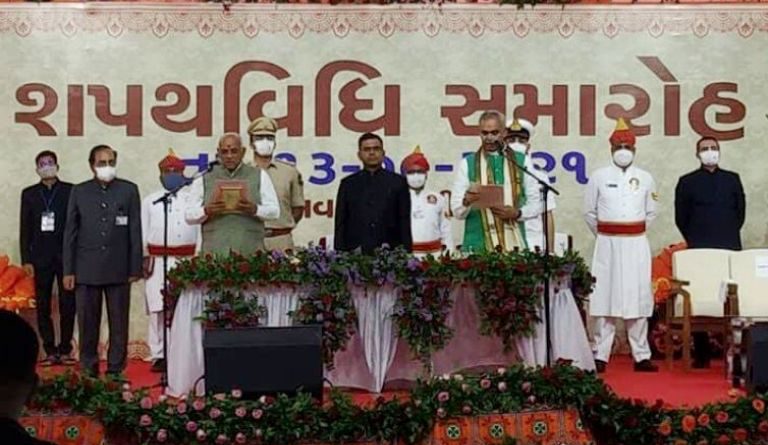 गुजरात के नए मुख्यमंत्री भूपेंद्र पटेल ने राजभवन में शपथ ली