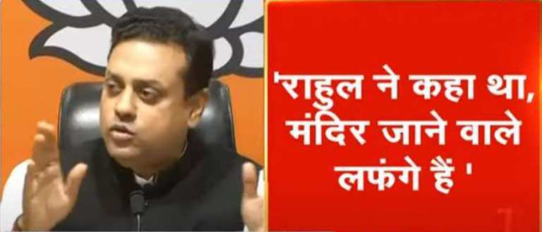पार्टी प्रवक्ता संबित पात्रा ने कहा कि हिन्दू और हिन्दुत्व पर प्रहार करना कांग्रेस का चरित्र है। उन्होंने कहा कि कांग्रेस वही पार्टी है जिसकी ओर से भगवा आतंकवाद शब्द का इस्तेमाल किया गया था साथ ही उन्होंने राहुल के बयान को हिन्दुओं पर प्रहार बताया है। संबित ने कहा कि एक वक्त था जब कहा था संस्कृति की वजह से बलात्कार होते हैं। बीजेपी प्रवक्ता ने कहा कि कांग्रेस हमेशा वोट बैंक की राजनीति करती है। उन्होंने कहा कि कांग्रेस की ओर से भरसक प्रयास हुआ था कि राम मंदिर की सुनवाई को कोर्ट में टाल दिया जाए। राहुल ने ही कहा था कि मंदिर जाने वाले लड़कियां छेड़ते हैं। सोनिया जी की पार्टी ने भगवान राम के लिए हलफनामा दिया था इन लोगों ने भारत का संविधान नहीं पढ़ा है, उपनिषद तो बहुत दूर की बात है।