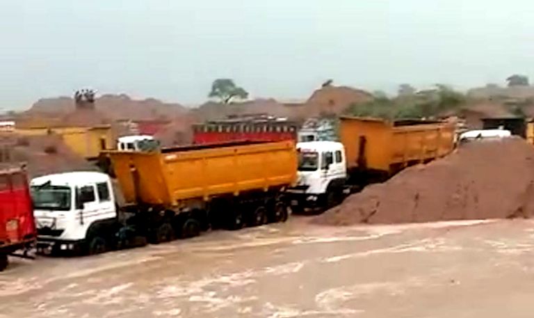 भिंड में तेज बारिश से सिंध उफनाई: रेत भरने आए 50 से ज्यादा ट्रक फंसे, ड्राइवर्स और कंडक्टरों ने बचाई जान
