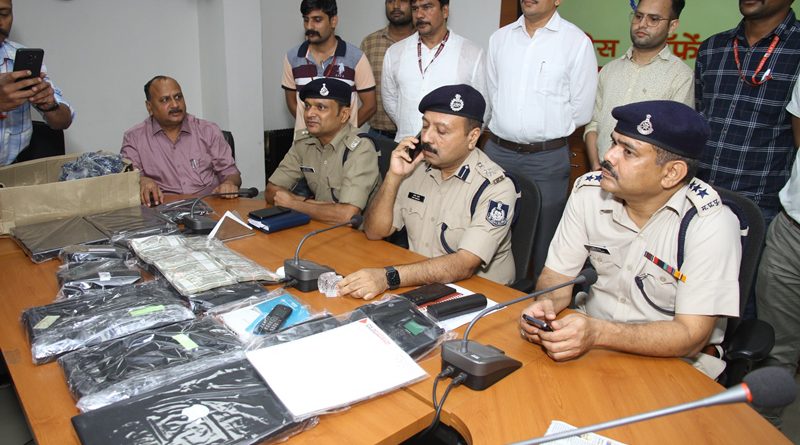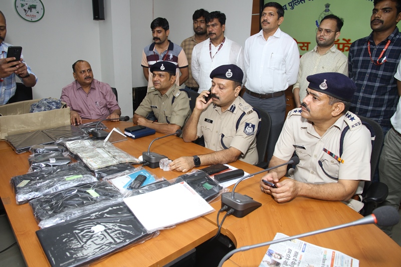 कॉल सेंटर से 8 लेपटॉप, 2 मॉडम, 08 वायरलेस टेलीफोन, 1 मोबाइल फोन तथा 6 लाख रूपये नगद व ठगी के दस्तावेज आदि जप्त।