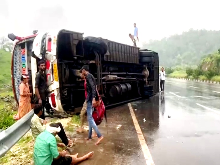 ग्वालियर से गुजरात जा रही बस पलटी, बच्ची समेत 3 की मौत