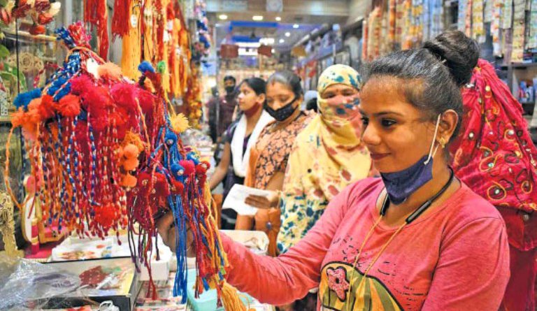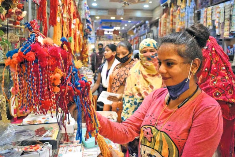 11 अगस्त को रक्षाबंधन का त्यौहार है अब सिर्फ चार दिन ही इस त्यौहार के लिए रह गए हैं। यही कारण है कि बाजारों में राखी की मांग बढ़ गई है। शहर के महाराज बाड़ा, दौलतगंज, सराफा बाजार, उपनगर ग्वालियर के किलागेट व मुरार के सदर बाजार में जगह-जगह राखी के बाजार सज गए हैं। बाजारों में राखी की रौनक आसानी से देखी जा सकती है। बाजारों में पहुंचने वाली ज्यादातर महिलाएं हैं। एक साल पहले तक जो राखियां 10 से 20 रुपए की मिल रही थीं वह अब 25 से 30 रुपए के बीच मिल रही हैं। इसके साथ ही सादा राखी की अपेक्षा डिजाइनर राखियों की मांग भी ज्यादा है। जैसे बच्चों के लिए कार्टून फीचर वाली राखियां बाजार में है तो बड़ों के लिए थीम बेस राखियां मार्केट में हैं।