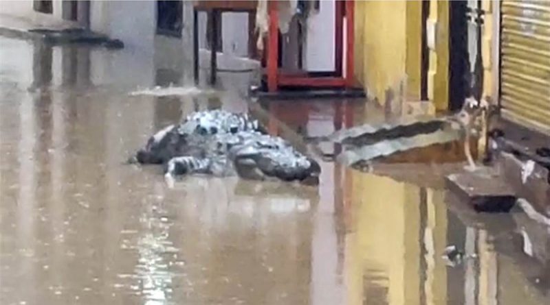 शिवपुरी में बारिश में बस्तियों में भरा पानी, घुस आया मगरमच्छ, फैली दहशत