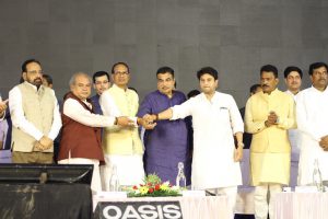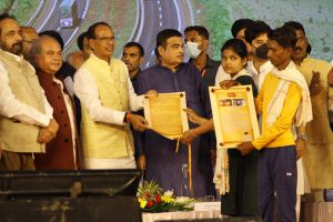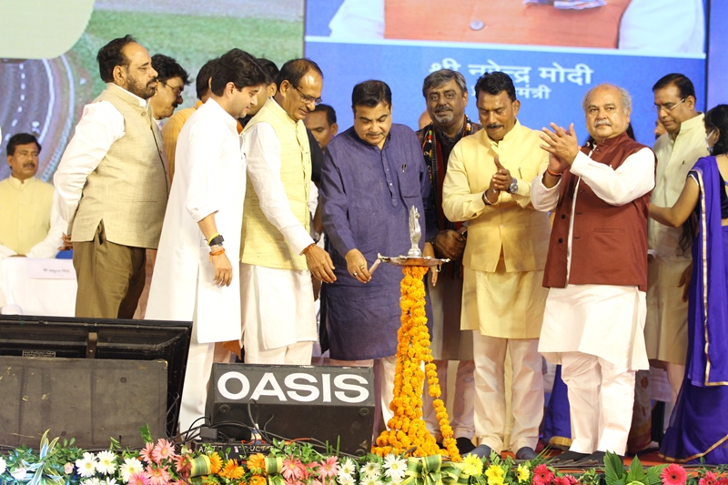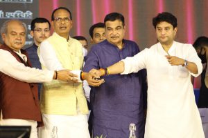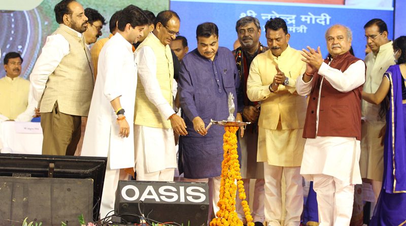 GWALIOR में CM शिवराज व केंद्रीय मंत्री गडकरी और सिंधिया ने बटन दबाकर एलिवेटेड रोड सहित 1128 करोड़ के विकास कार्यों की आधारशिला रखी