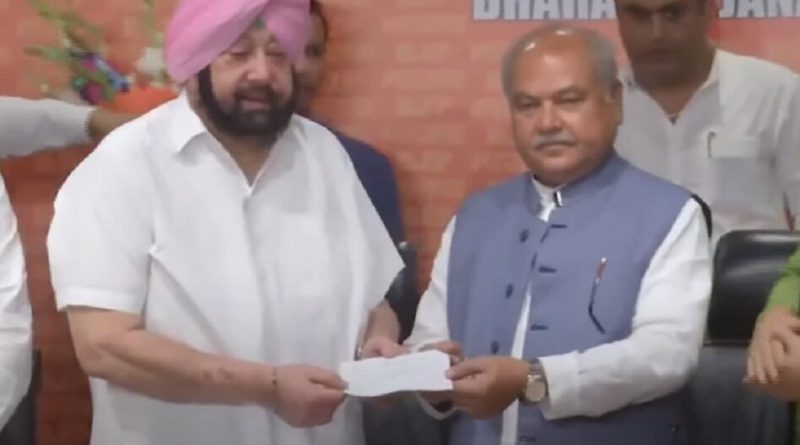 नई दिल्ली. पंजाब के पूर्व मुख्यमंत्री कैप्टन अमरिंदर सिंह ने आज भारतीय जनता पार्टी का दामन थाम लिया। केन्द्रीय मंत्री नरेन्द्र सिंह तोमर और किरेन रिजिजू ने उनको भाजपा की सदस्यता दिलायी। र्कैप्टन अमरिंदर ने अपनी पार्टी पंजाब लोक कांग्रेस का भी भारतीय जनता पार्टी में विलय कर दिया है। अमरिंदर के साथ-साथ उनके कई सहयोगी भी भाजपा में शामिल हो गये है।