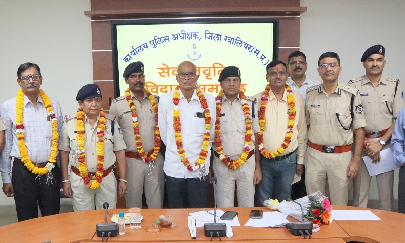 आज पुलिस कन्ट्रोल रूम ग्वालियर सभागार में पुलिस सेवा से सेवानिवृत्त हो रहे पुलिस अधिकारी व कर्मचारियों के लिये विदाई समारोह का आयोजन किया गया। जिसमें पुलिस अधीक्षक ग्वालियर द्वारा पुलिस विभाग से सेवानिवृत्त हो रहे पुलिस अधिकारी व कर्मचारियों को सर्टिफिकेट, शॉल श्रीफल व ट्रैवलर वेग देकर विदाई दी गई। पुलिस अधीक्षक ने सेवानिवृत्त पुलिसकर्मियों से नौकरी के दौरान उनके अनुभवों को भी साझा किया। इस अवसर पर पुलिस अधीक्षक ने सेवानिवृत्त हुए पुलिसकर्मियों से उनके भविष्य के कार्यकलापों के बारे में जाना तथा उनको सेवानिवृत्त उपरांत स्वयं को सामाजिक कार्यो में व्यस्त करने की सलाह दी जिससे अभी तक रही व्यस्तता की दिनचर्या से बाहर निकलने में मदद मिलेगी। कार्यक्रम के समापन पर पुलिस अधीक्षक ने आज सेवानिवृत्त हो रहे पुलिसकर्मियों को शॉल श्रीफल व ट्रैवलर वेग भेंटकर उनके बेहतर स्वास्थ्य व उज्जवल भविष्य की कामना की। पुलिस अधीक्षक, ग्वालियर द्वारा सेवानिवृत्त हो रहे सभी अधिकारी एंव कर्मचारियों से उनकी सेवाकाल के दौरान किये गये कार्यो की जानकारी ली गई साथ ही उनके द्वारा किये गये कार्यो की सराहना की गई।