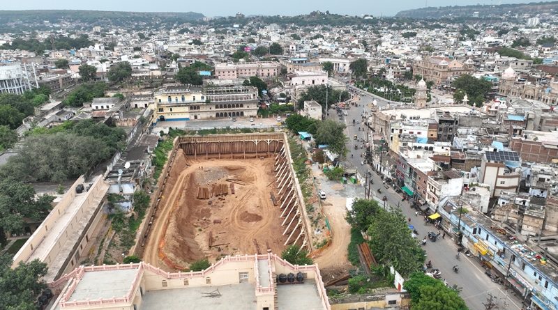 महाराज बाडा पर बन रही मल्टी लेवल पार्किंग का काम बारिश के कारण 2 महीने से रूका
