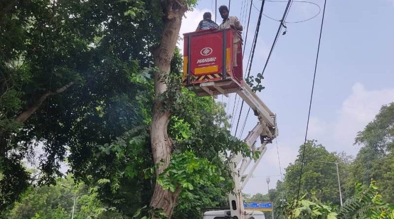पार्क विभाग ने दिशा सूचको से की पेड़ों की छटाई