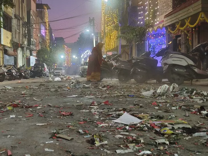 ग्वालियर. दीवाली हर्षोल्लास और जोश के साथ मनाई गयी है। शहर के लोगों ने जमकर आतिशबाजी की, लेकिन दीपोत्सव के दूसरे दिन सफाईकर्मियों की छुट्टी का असर पूरे शहर में साफ दिखाई दे रहा है। कचरा गाडि़यों के नहीं चलने से बाजारों से लेकर सड़कों तक कचरा ही कचरा नजर आया है। इसमें सबसे अधिक आतिशबाजी का कचरा है।