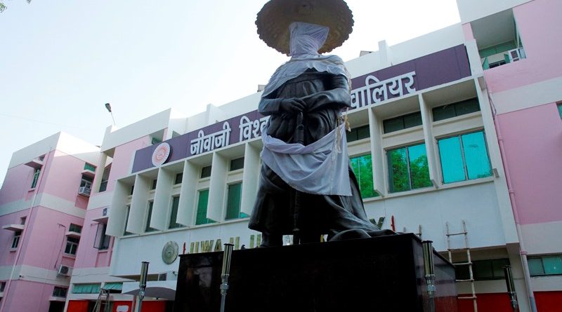 ग्वालियर. जीवाजी विश्वविद्यालय परिसर में स्थापित जीवाजीराव सिंधिया की 12 फीट ऊंची प्रतिमा के अनावरण का इंतजार अगले महीने खत्म हो जायेगा। केन्द्रीय मंत्री ज्योतिरादित्य सिंधिया प्रतिमा का अनावरण राष्ट्रपति द्रोपदी मुर्मू से कराने के लिये प्रयासरत थे इसकी चर्चा भी चली कि 21 अक्टूबर को अनावरण किया जायेगा, अनावरण का कार्यक्रम महामहिम समय न मिल पाने की वजह से रद्द हो गया है। दीवाली के मौके पर 3 नवम्बर को केन्द्रीय मंत्री ज्योतिरादित्य सिंधिया देश उपराष्ट्रपति जगदीश धनखड़ से मिले थे। अब उपराष्ट्रपति जगदीश धनखड़ ने 20 दिसम्बर को आने की स्वीकृति प्रदान कर दी है। इसकी खबर मिलते ही विश्वविद्यालय प्रबंधन ने मूर्ति अनावरण के कार्यक्रमत की अभी से तैयारियां शुरू कर दी है।