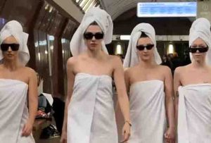 मेट्रो में तौलिये 4 युवतियों को देखकर हैरान हो गये लोग, बराबर सेल्फी ले रही थी युवतियां