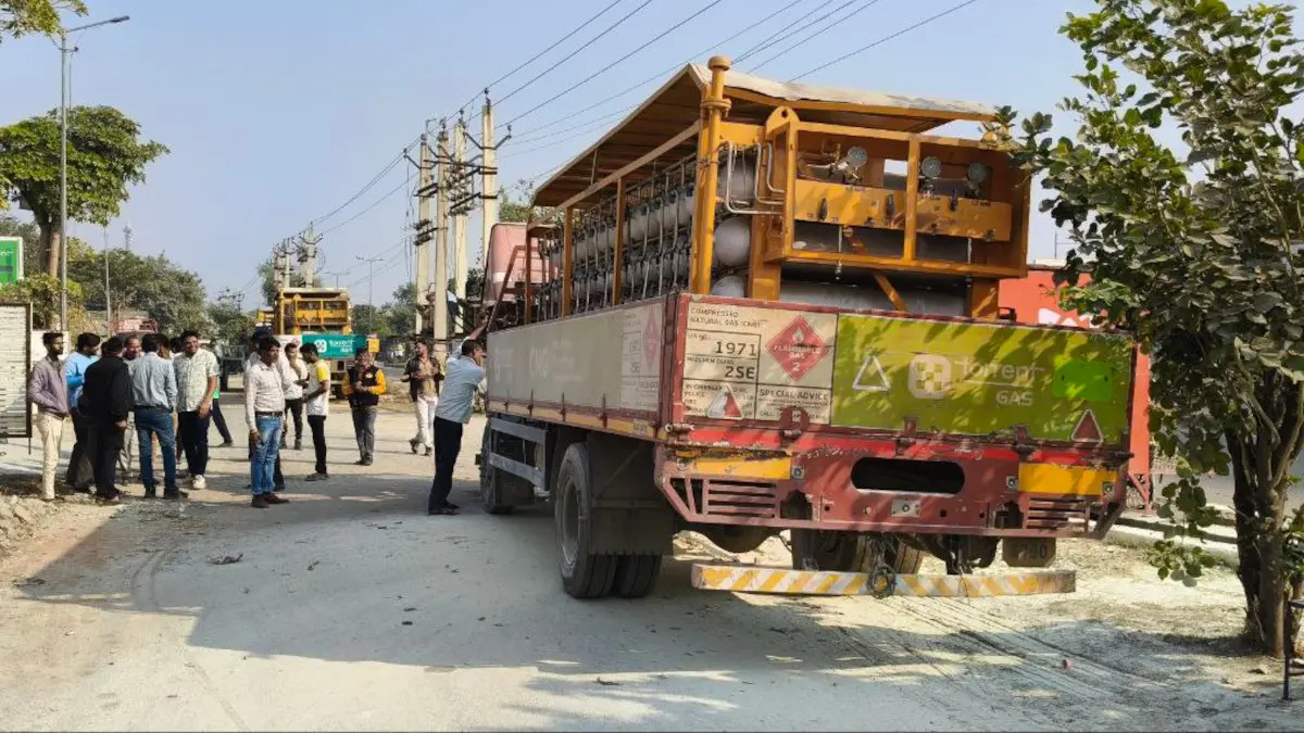 जयपुर में CNG सप्लाई ट्रक के साइलेंसर में लगी आग, मची अफरा-तफरी