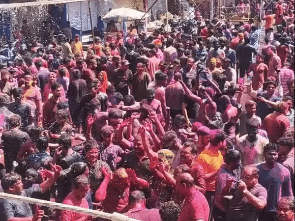 गेर में हजारों की भीड़ के बीच से निकली एम्बूलेंस, टैंकरों से पानी और मिसाइल से उड़ रहा है गुलाल