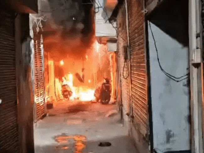 कांग्रेस नेता के घर और ऑफिस में लगी आग से 2 बाइक, इलेक्ट्रिक कार जलकर राख
