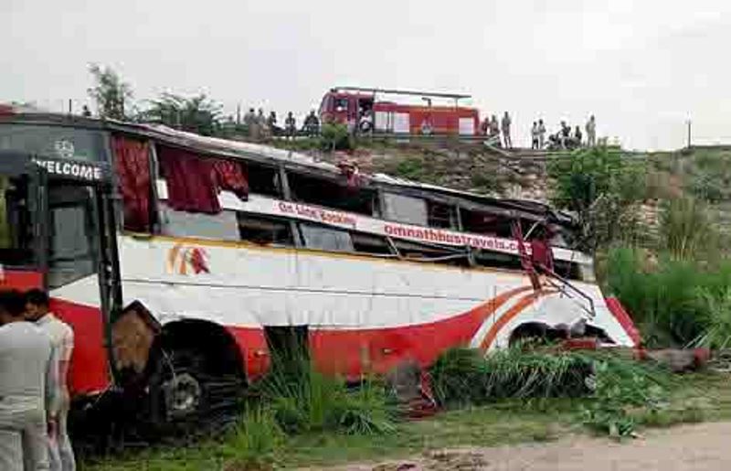 आगरा-लखनऊ एक्सप्रेस वे की रेलिंग तोड़कर बेकाबू बस नीचे गिरी, 2 की मौत 52 घायल