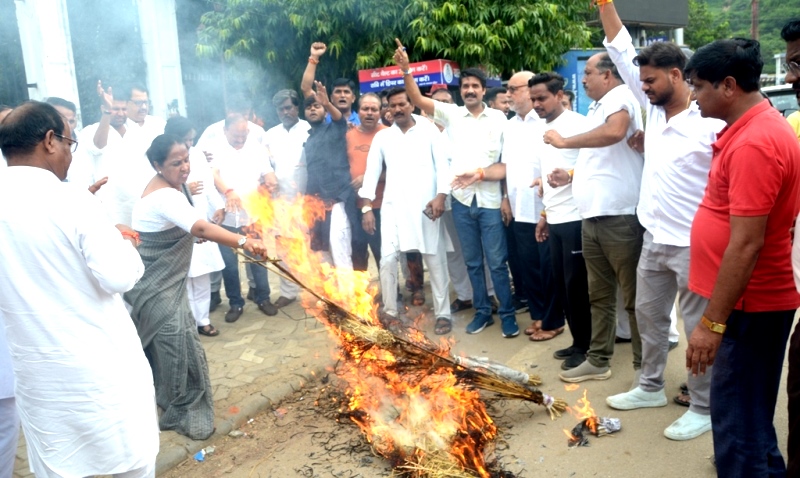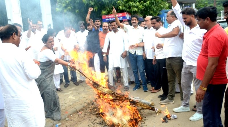 राहुल गांधी, प्रियंका गांधी एवं सांसदों की गिरफ्तारी के विरोध में केंद्र सरकार का पुतला दहन
